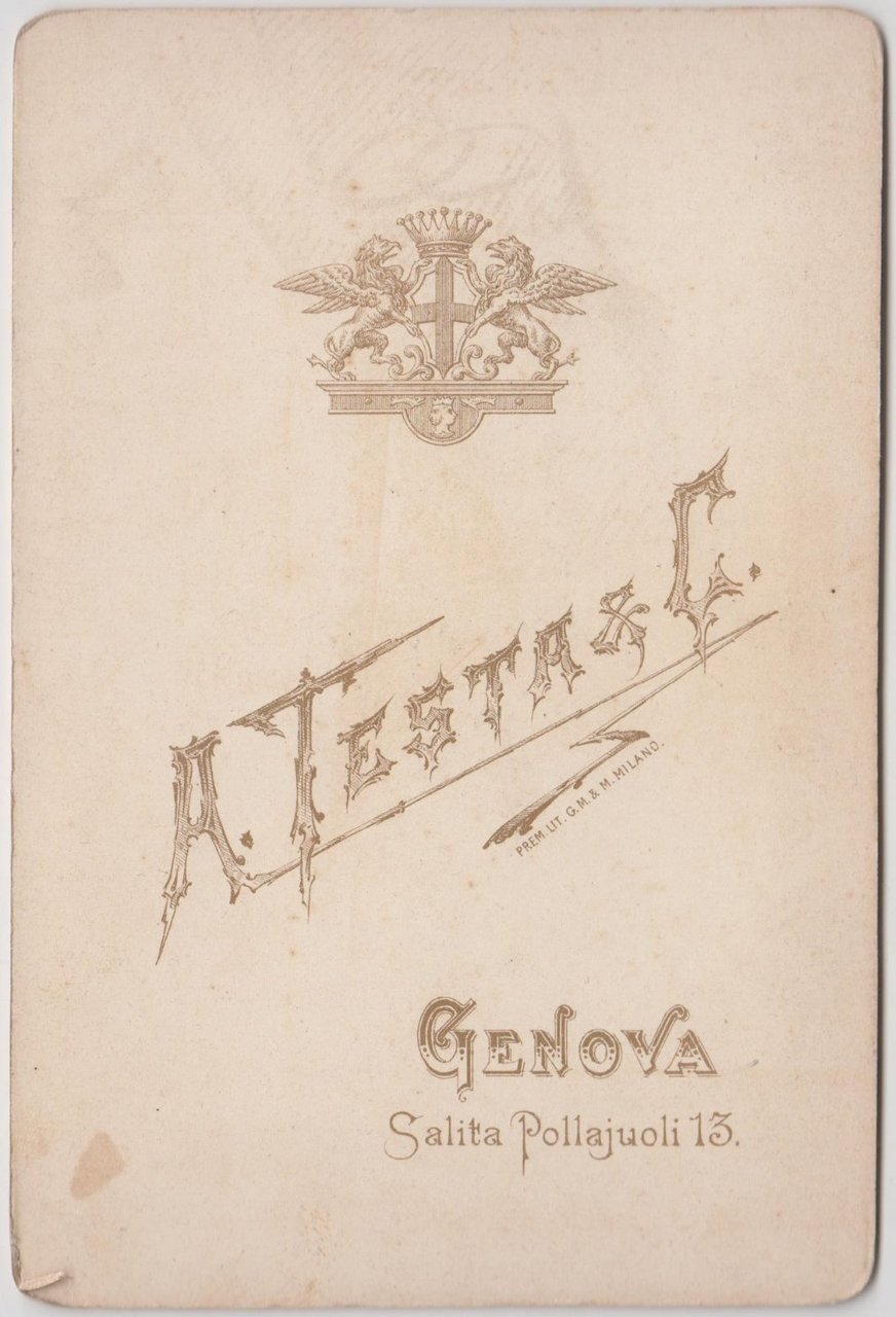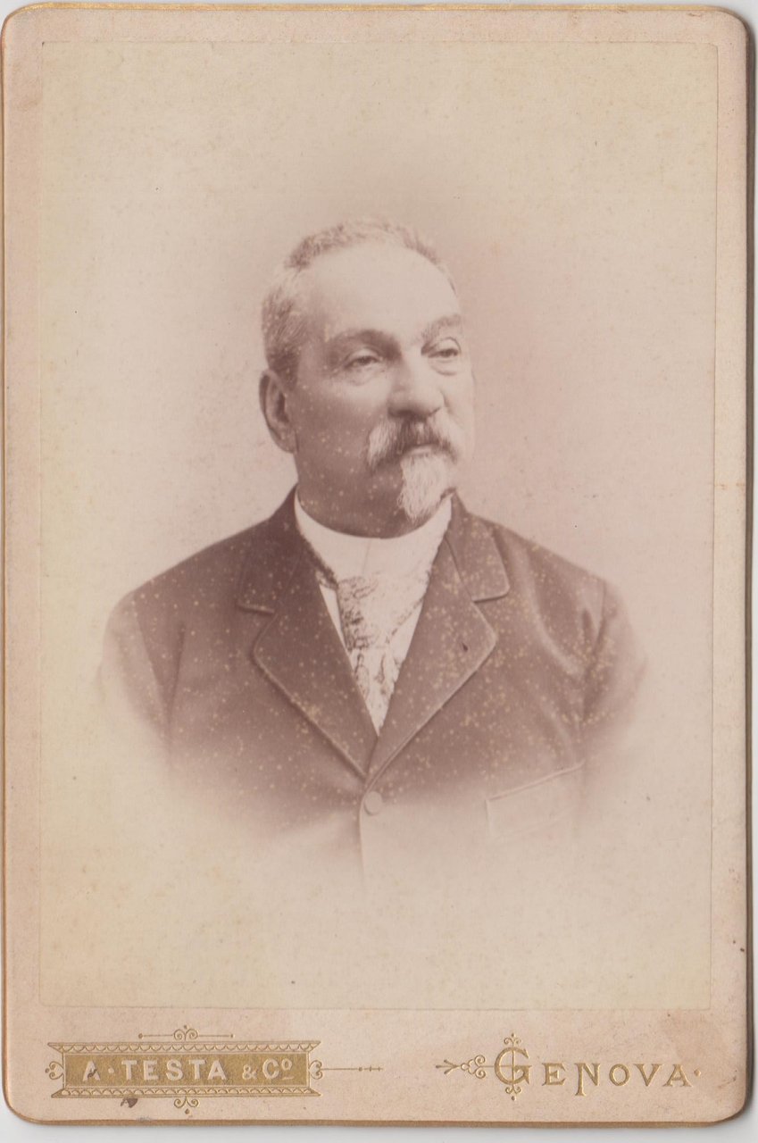 foto photo albumina cabinet card gentiluomo con baffi in posa by A. Testa Genova 1880 c.a.