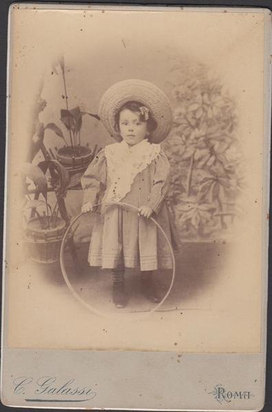 foto photo albumina cabinet card ritratto di bambina in posa con cerchio by C. Galassi Roma 1880 c.a.