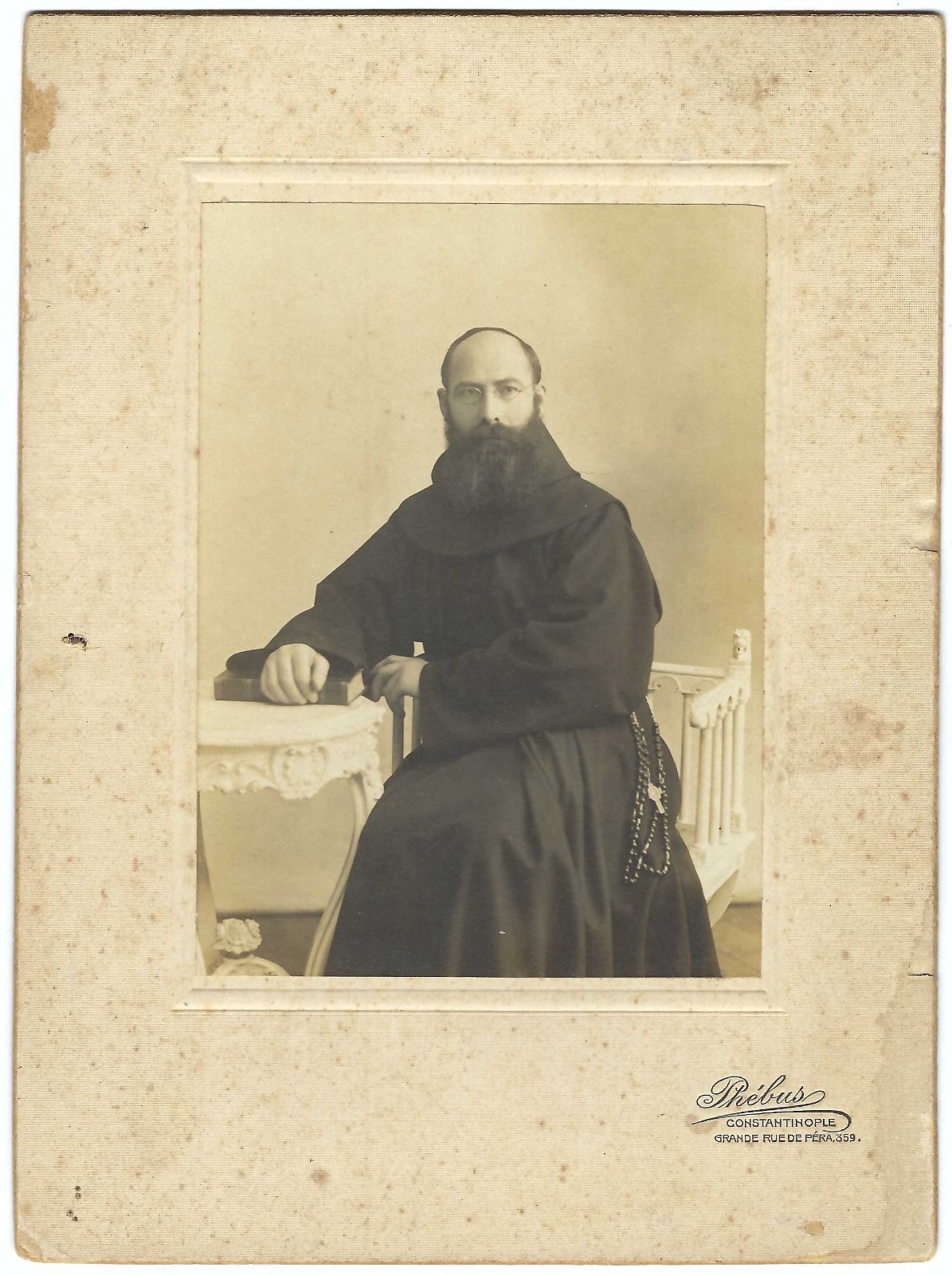 Foto photo albumina frate seduto con libro by Phebus Costantinopoli 1900 c.a.