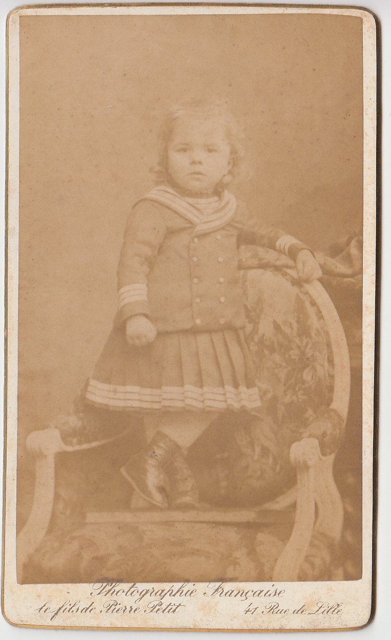 Foto photo Bambina vestita alla marinara by Pierre Petit Paris cdv 1870 c.a.