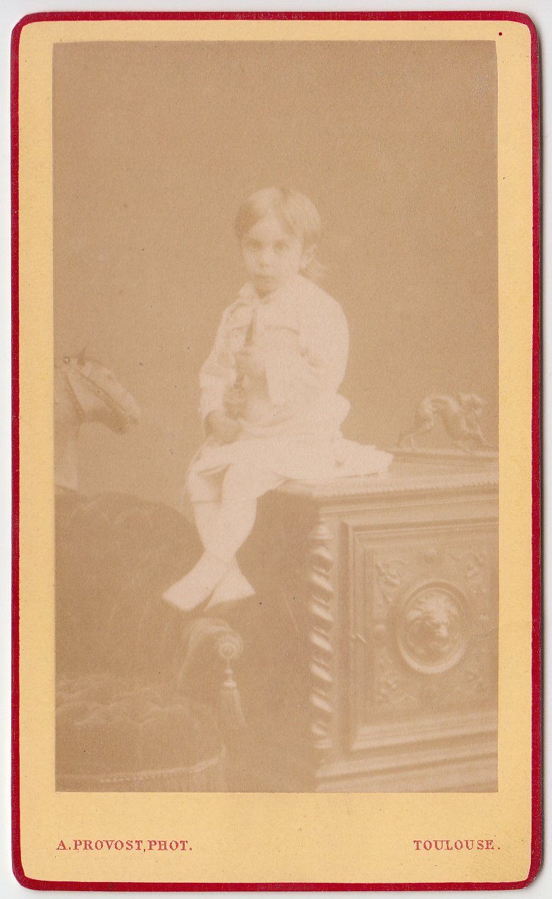 Foto photo bambino con giocattoli by Provost Toulouse Perpignan cdv 1870 c.a.