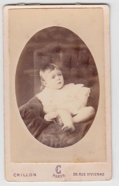 Foto photo bambino seduto in poltrona by Phot. Tony Rouge Crillon Paris cdv 1880 c.a.
