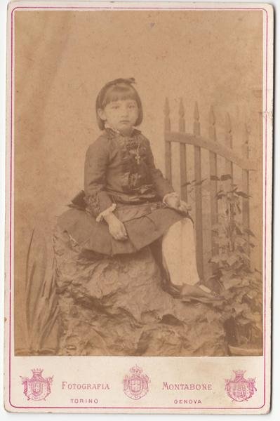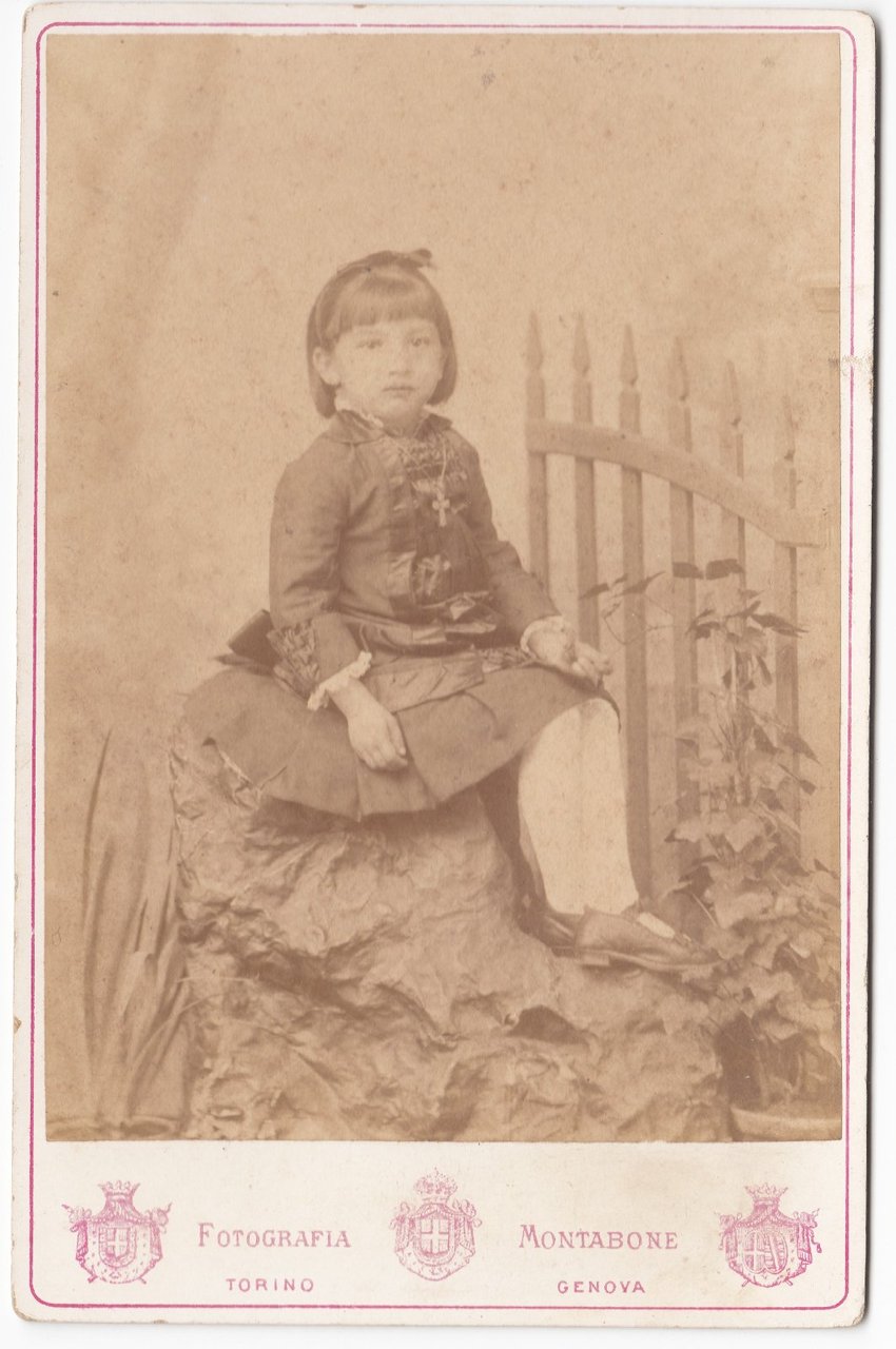 Foto photo cabinet card bambina seduta in posa by Bertelli & Comp Torino 1880 c.a.