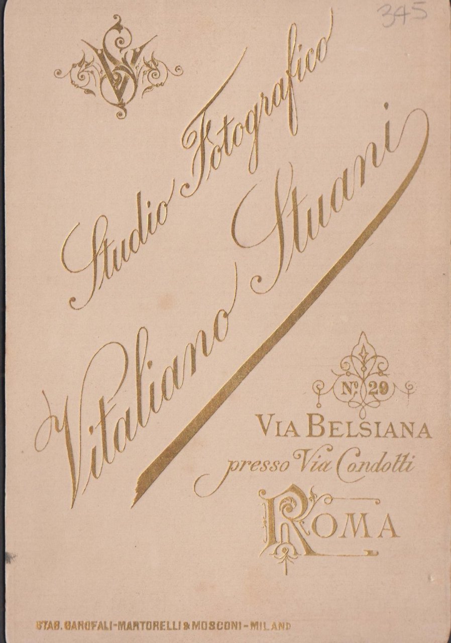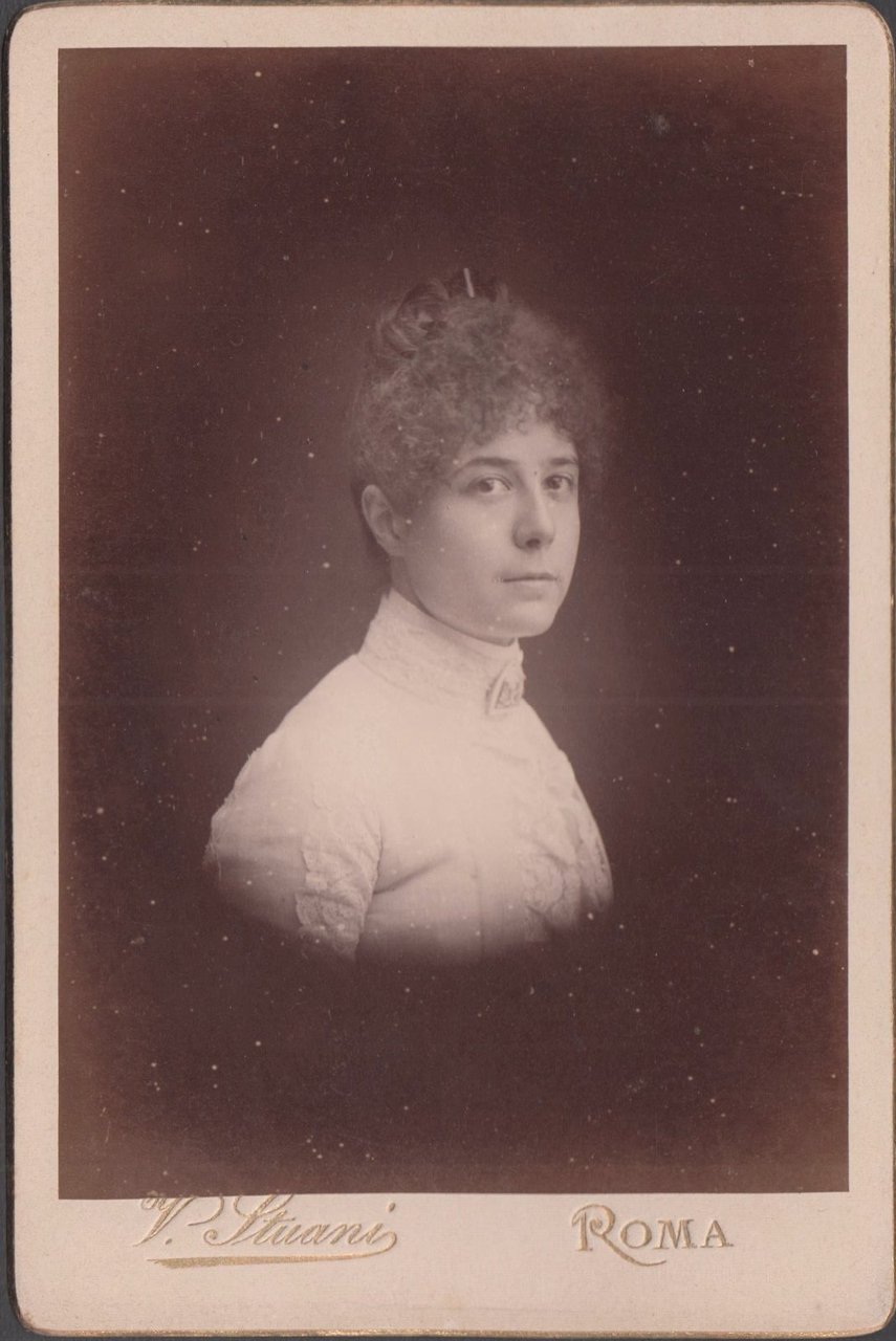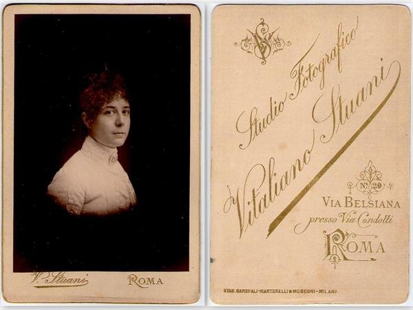 Foto photo cabinet card gentildonna con capelli raccolti by V. Stuani Roma 1880 c.a.