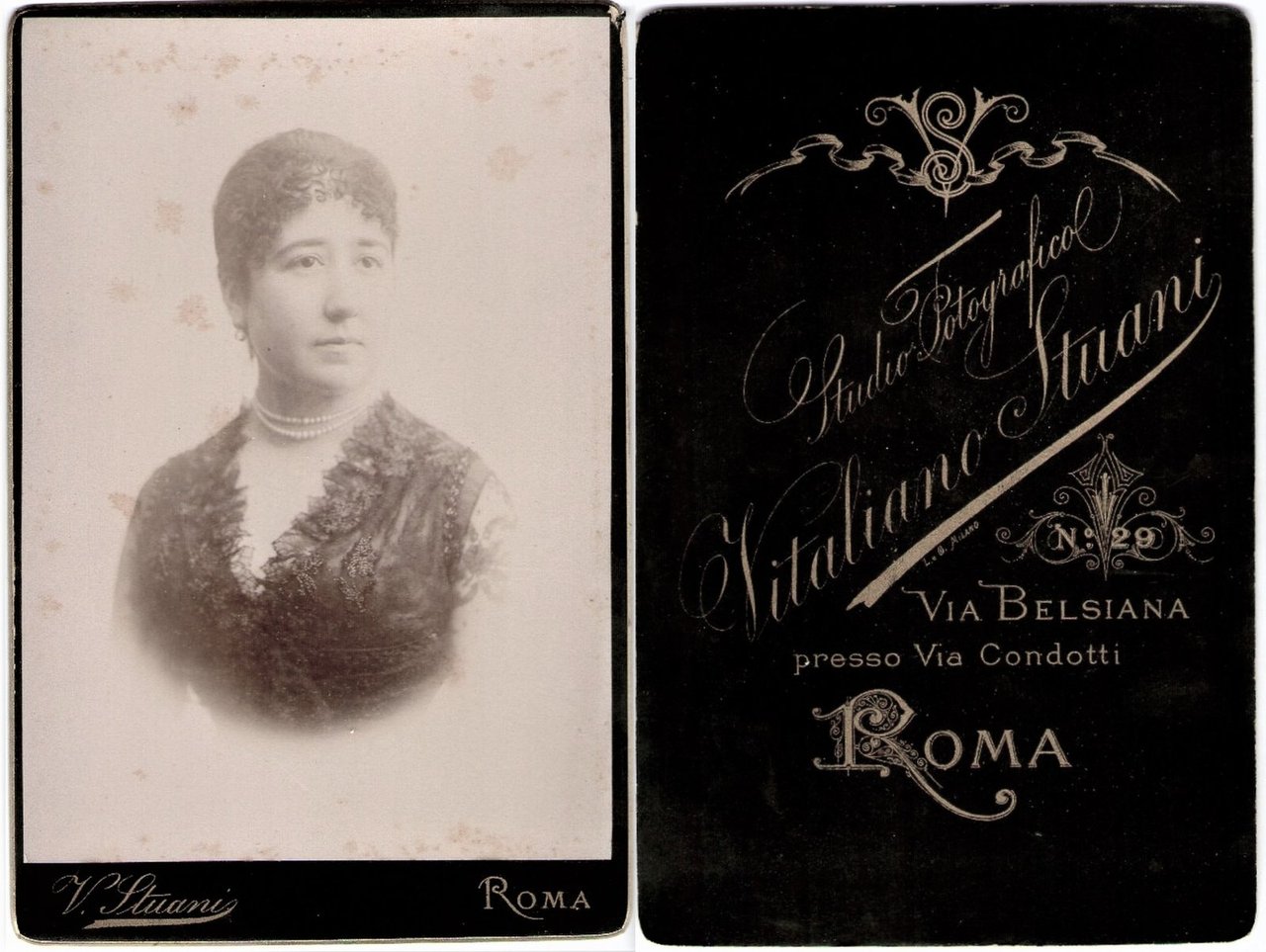 Foto photo cabinet card gentildonna con collana di perle by V. Stuani Roma 1880 c.a.