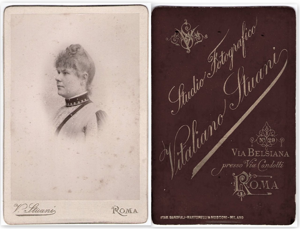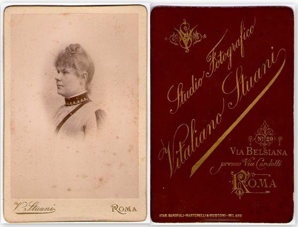 Foto photo cabinet card gentildonna in posa by V. Stuani Roma 1880 c.a.