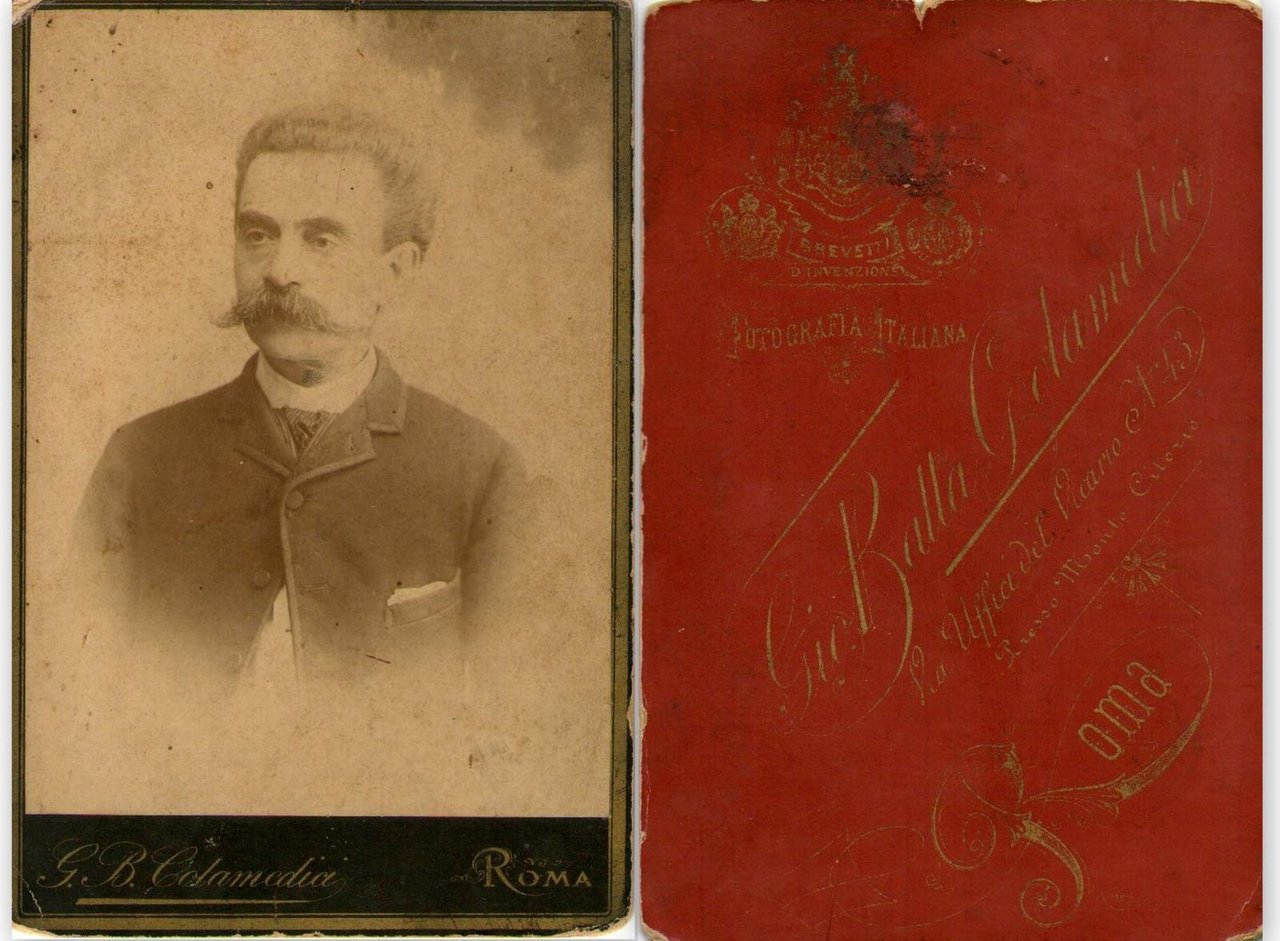 Foto photo cabinet card gentiluomo con baffi by G. B. Colamedici Roma 1880 c.a.