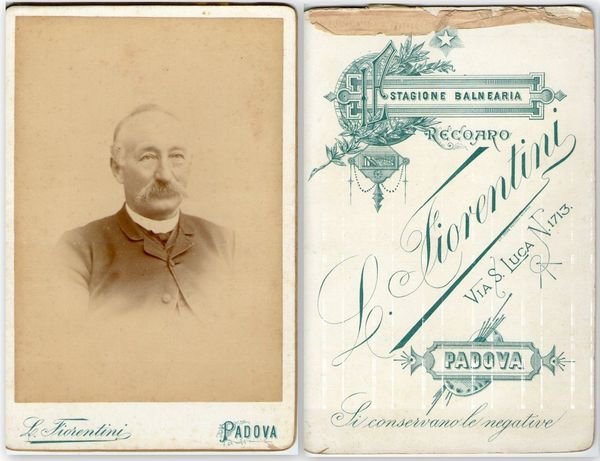 Foto photo cabinet card gentiluomo con baffi in posa by L. Fiorentini Padova 1880 c.a.