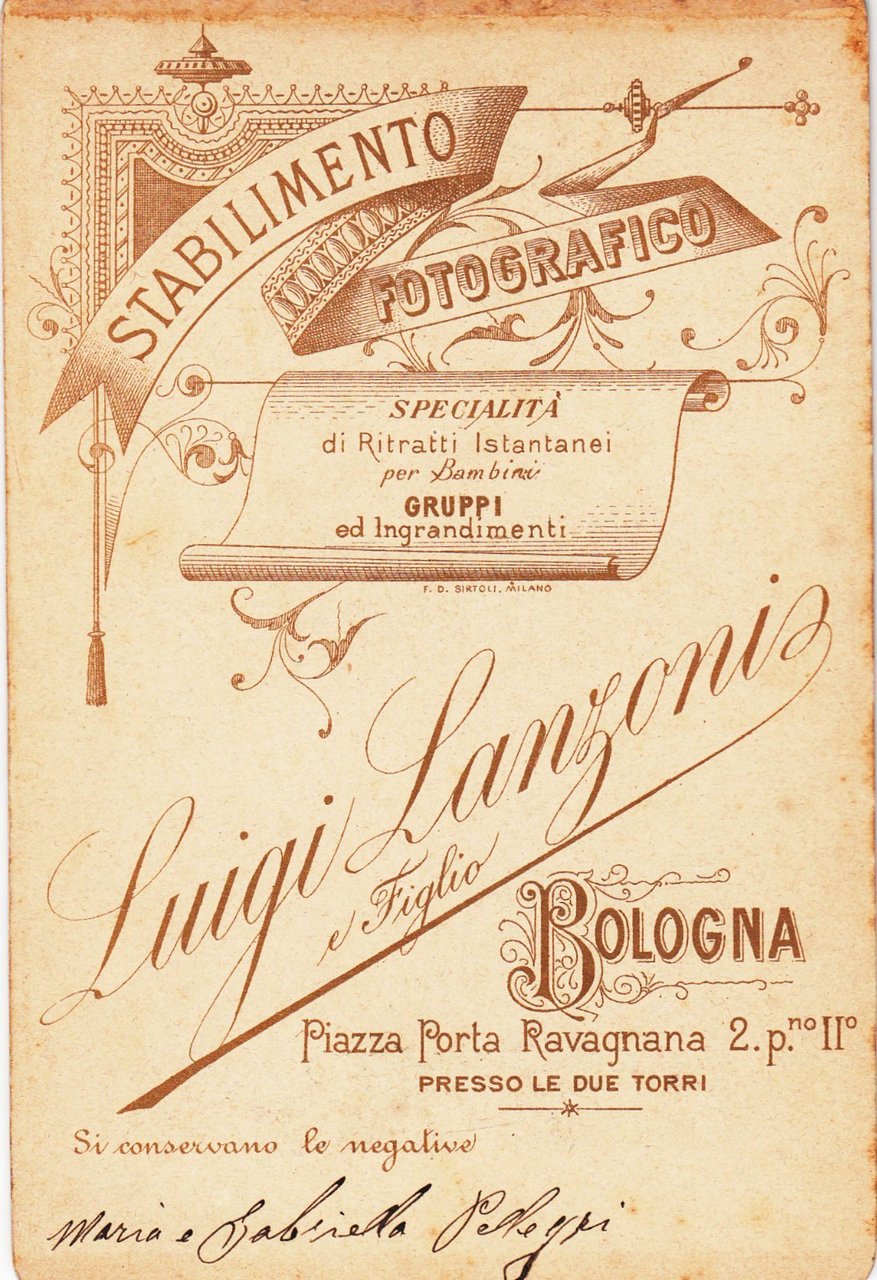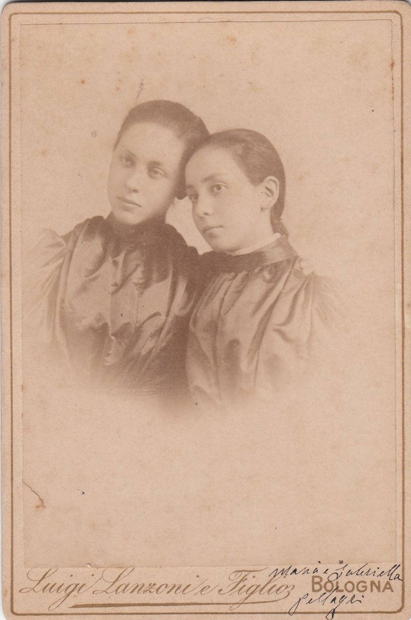 Foto photo cabinet card Maria e Gabriella Pellagri by L Lanzoni e figlio Bologna 1880 c.a.