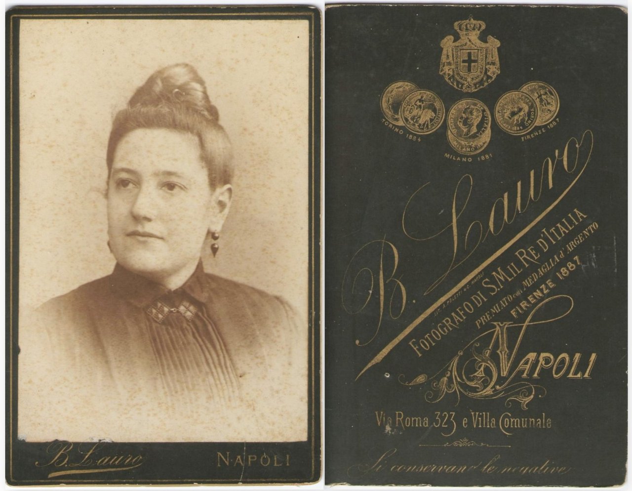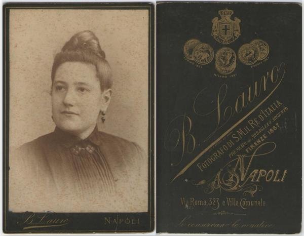 Foto photo cabinet gentildonna con l'orecchino by B. Lauro Napoli 1880 c.a.