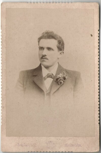 Foto photo cabinet gentiluomo con baffi e fiori all'occhiello by Federico Brunel Montevideo 1880 c.a.
