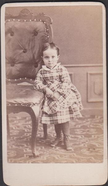 Foto photo cdv bambinacon vestito a scacchi in posa by A. Bertulli Pesaro 1880 c.a.