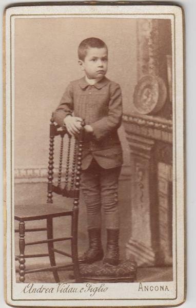 foto photo cdv bambino accanto alla sedia by A. Vidau Ancona 1880 c.a