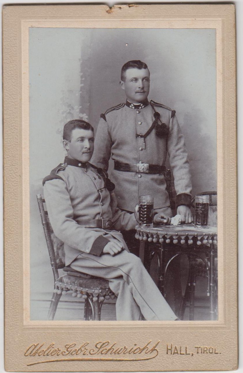 foto photo cdv cacciatori imperiali austriaci Kaisejager by O. Schuricht Hall Tirol 1880 c.a.