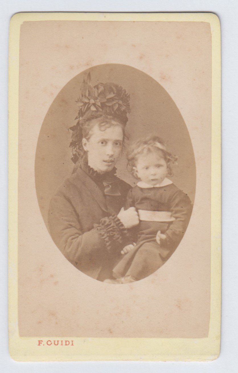 Foto photo cdv gentildonna con bambino in posa by F. Guidi Firenze 1875 c.a.