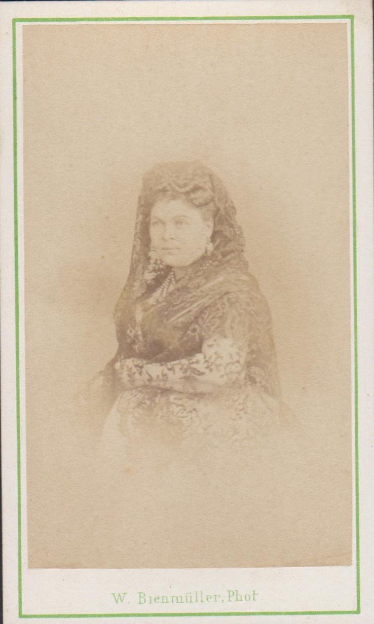 foto photo cdv gentildonna con velo in pizzo by W. Biemuller Nice 1880 c.a.