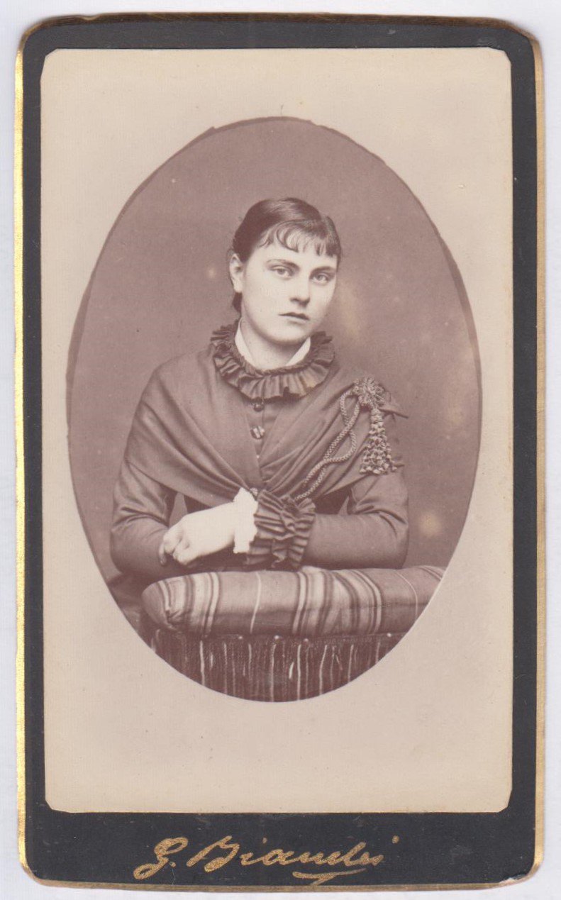Foto photo cdv gentildonna in ovale in posa by G. Bianchi Brescia 1870 c.a.