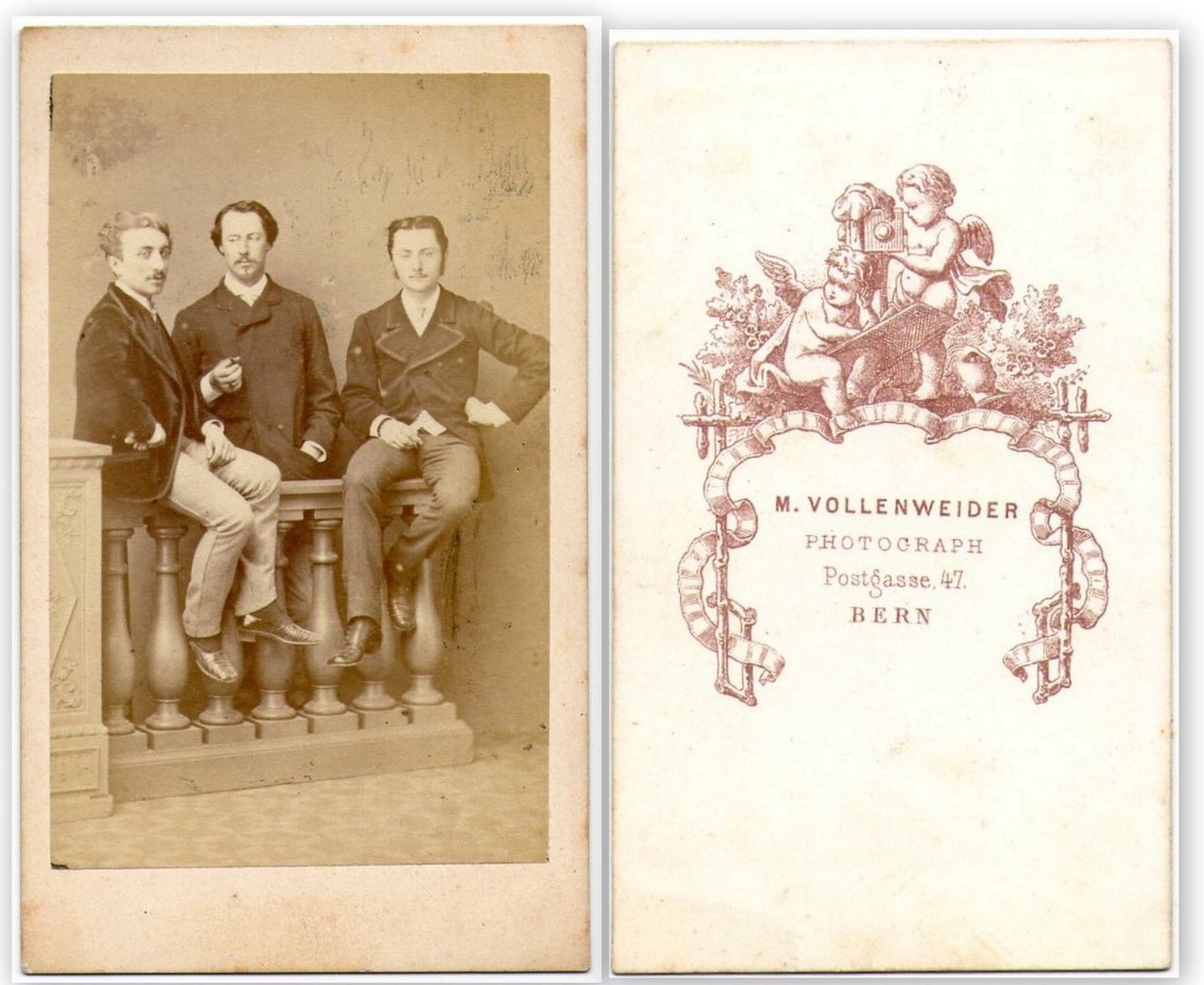 Foto photo cdv Gentiluomini sulla balaustra by M. Vollenweider Bern 1880 c.a. Dandy