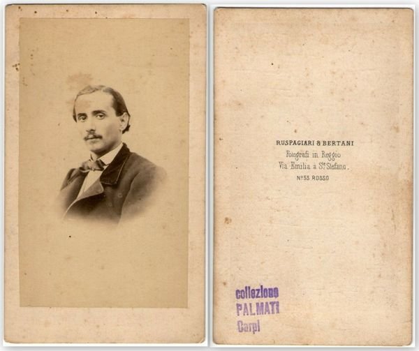 Foto photo cdv Gentiluomo con baffi e papillon by Ruspagiari & Bertani Reggio 1880 c.a.