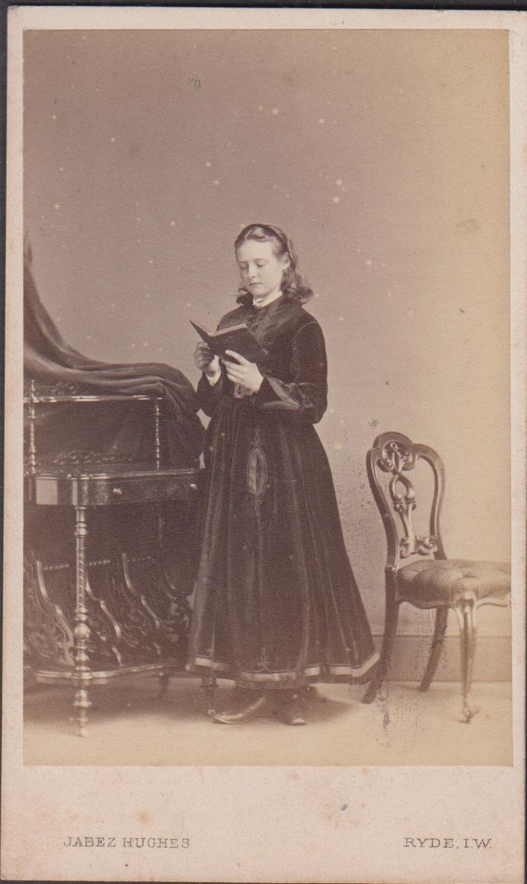 Foto photo cdv ragazza con libro in posa by Jabez Hughes 1870 c.a.