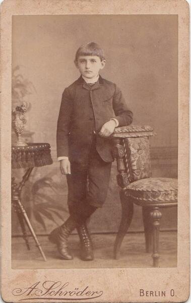 Foto Photo cdv ragazzino appoggiato alla sedia by A. Schroder Berlin 1880 c.a.