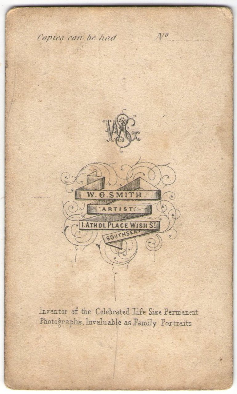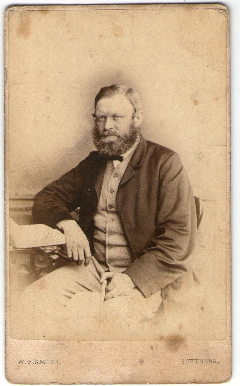 Foto photo cdv ritratto di gentiluomocon barba seduto by W. G. Smith Southsea 1880 c.a.