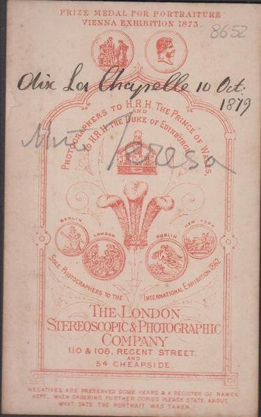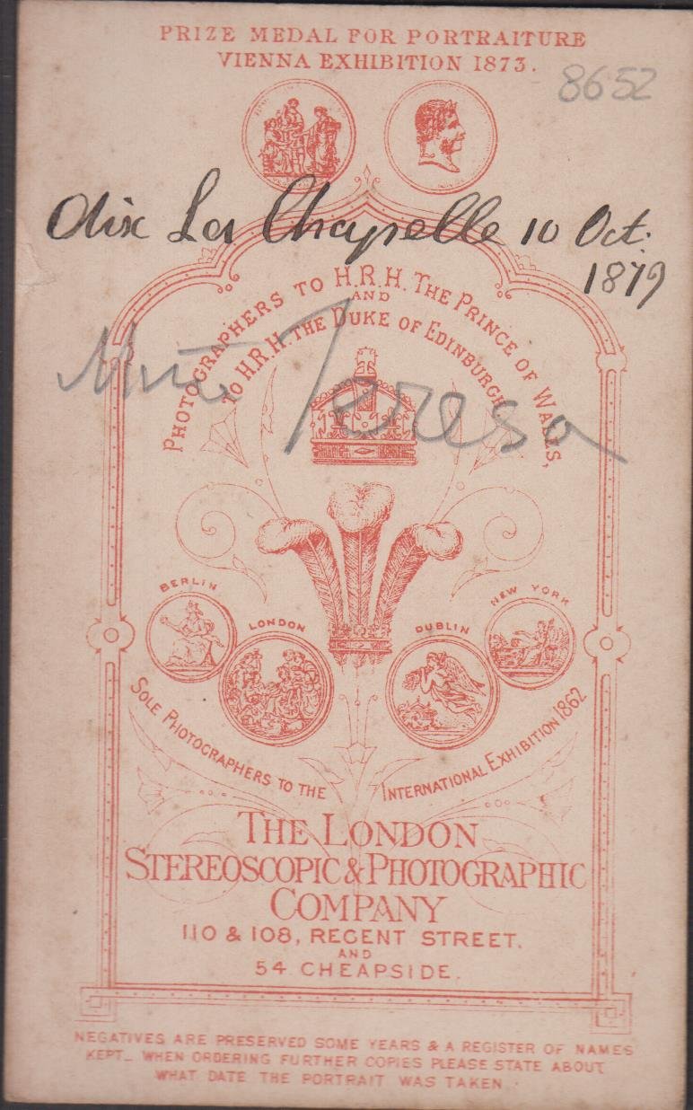 foto photo cdv ritratto di M. Teresa by London Stereoscopic Photographic Company 1879