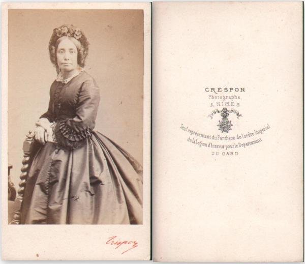 Foto photo gentildonna con cappello by Crespon Nimes cdv 1880 c.a.