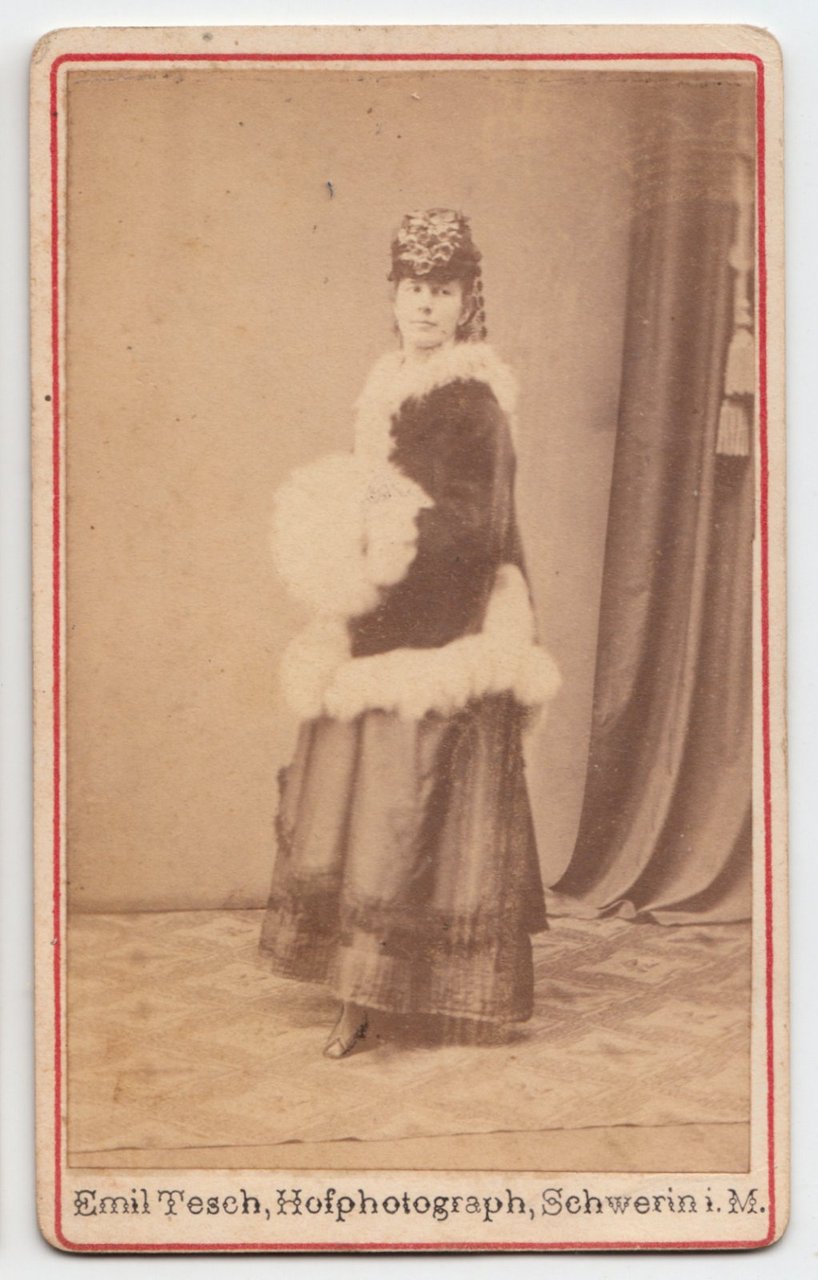 Foto photo gentildonna con cappello e manicotto di pelliccia in posa by Emil Tesch Schwerin cdv 1870 c.a.