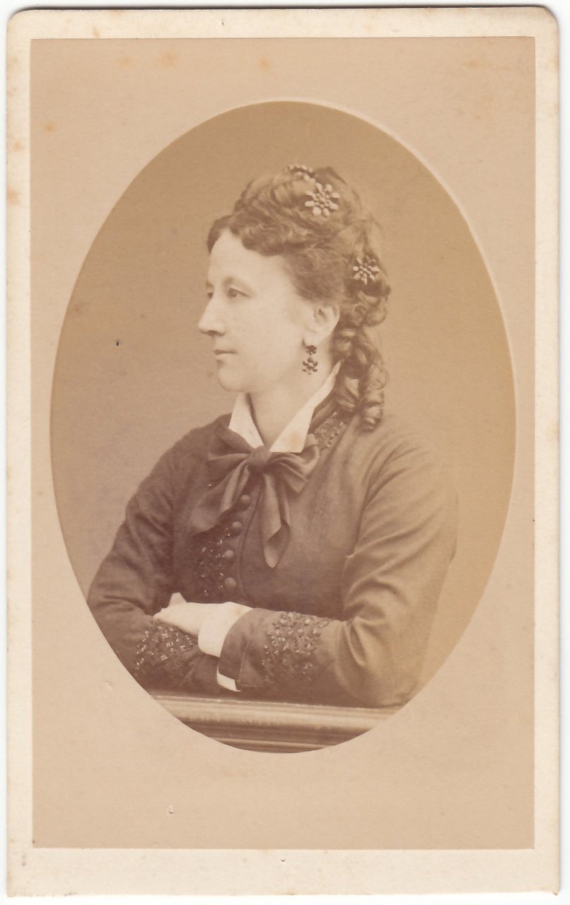 Foto photo gentildonna con fiori tra i capelli in posa by A. Ken E Bondonneau Paris cdv 1880 c.a.
