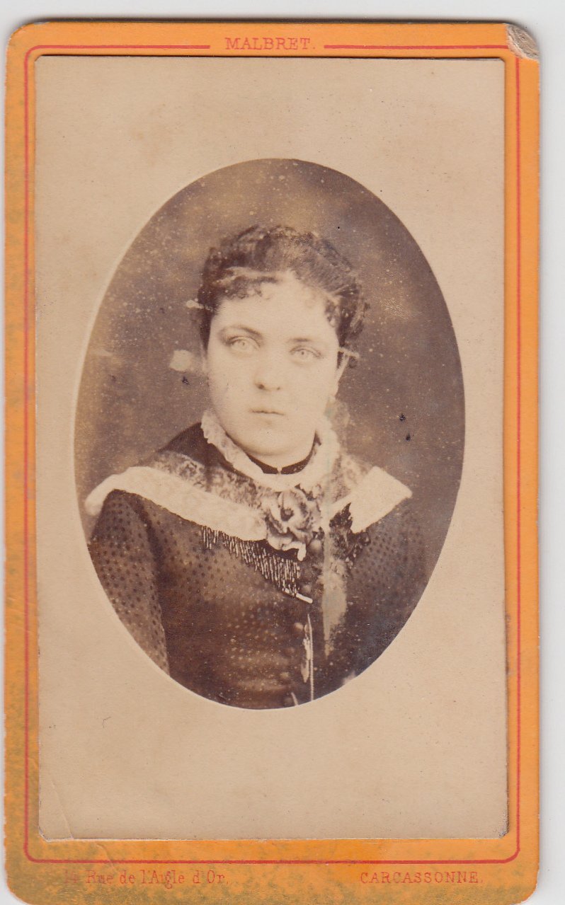 Foto photo Gentildonna con scialle e fiore by Malbret Carcassonne cdv 1870 c.a.