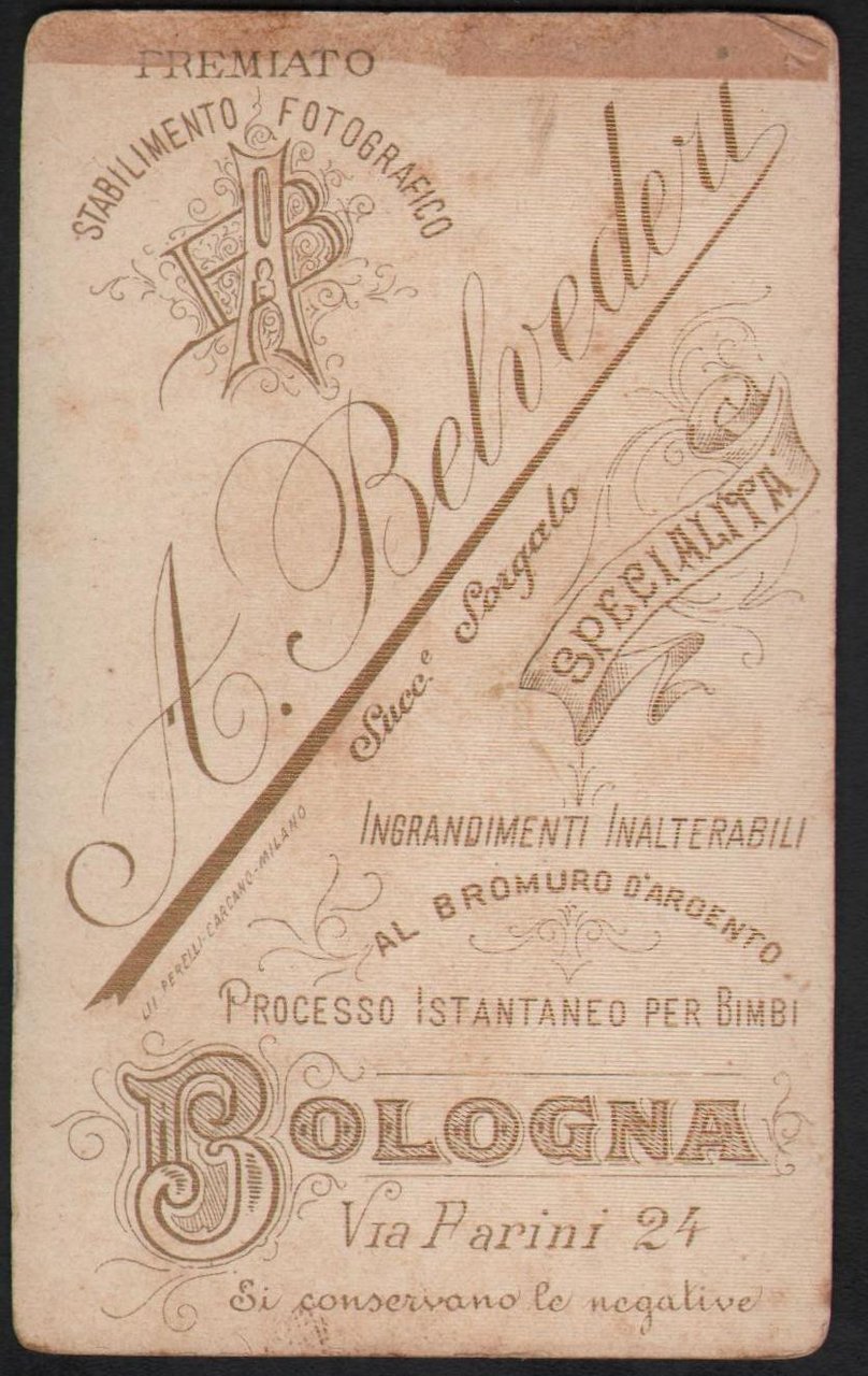 Foto photo gentildonna con spilla by Belvederi Bologna cdv 1880 c.a.
