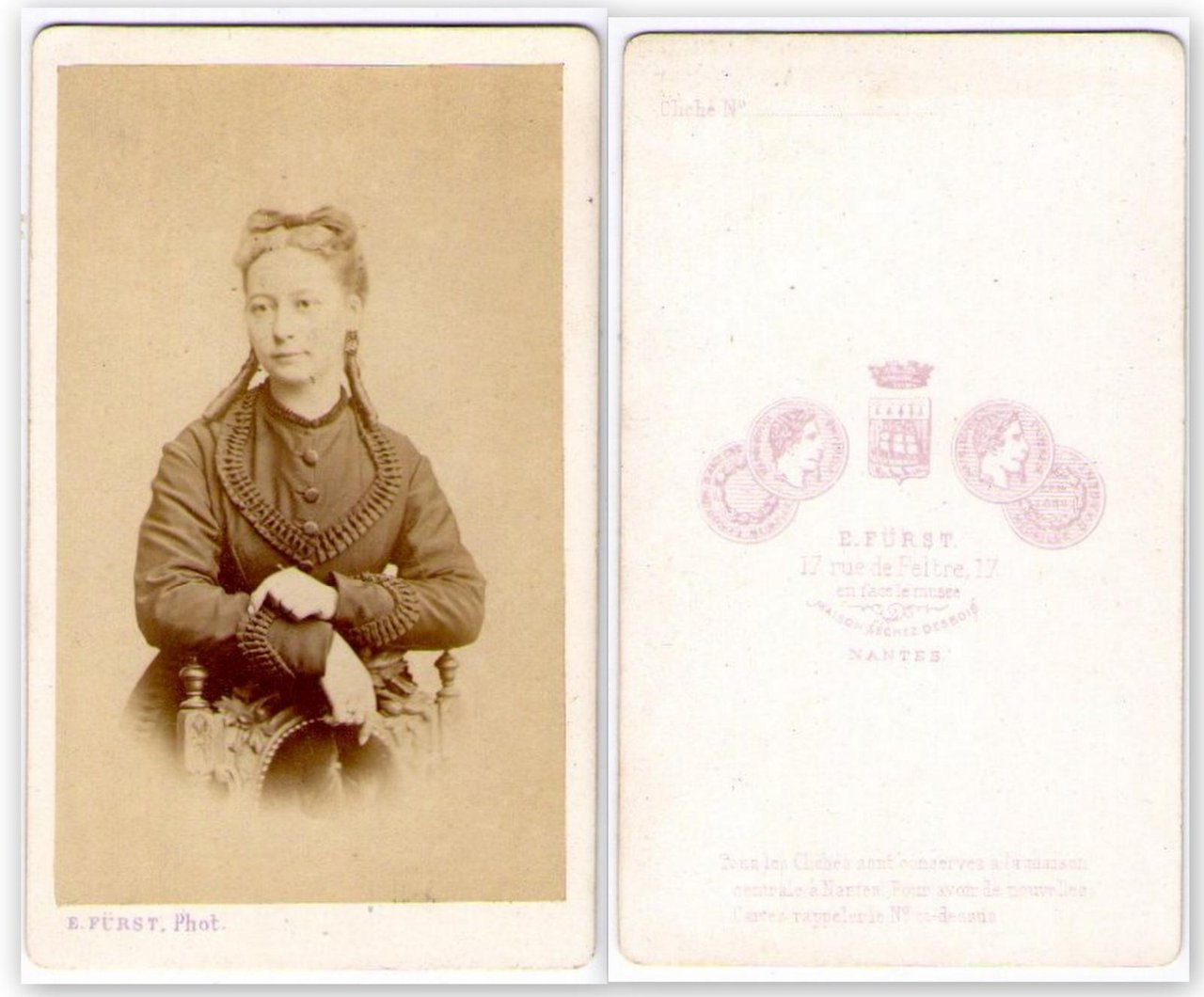 Foto photo Gentildonna con vestito elegante in posa by E. Furst Nantes cdv 1880 c.a.