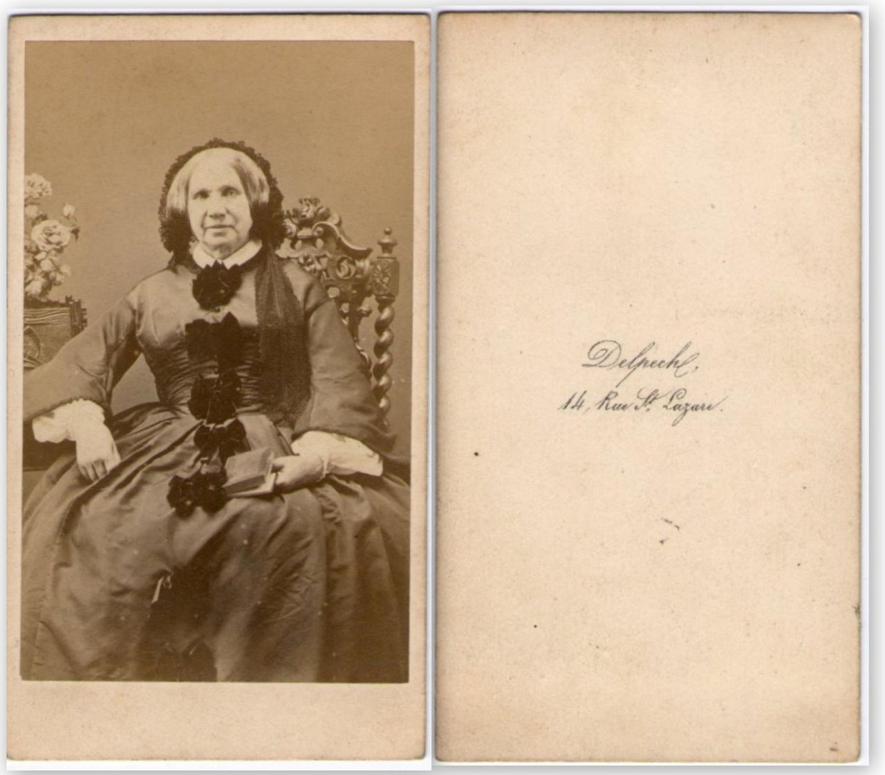 Foto photo gentildonna seduta con un libro by Delpech St. Lazare Paris cdv 1880 c.a.