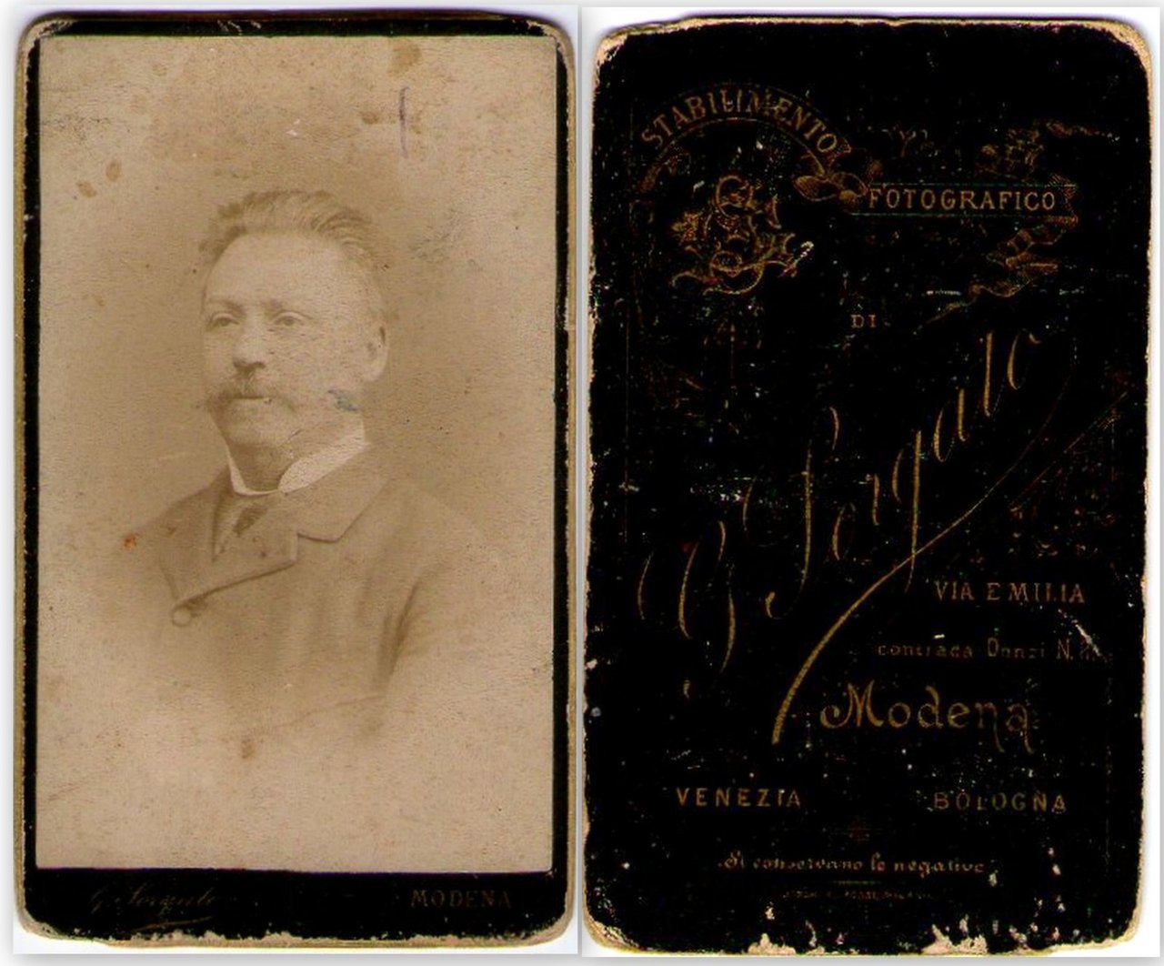 Foto photo gentiluomo con baffi by G. Sorgato Modena cdv 1870 c.a.