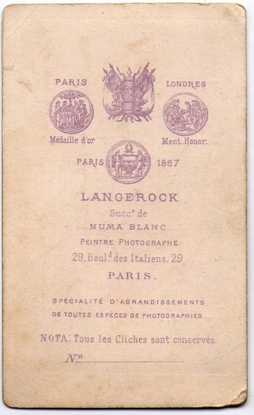 Foto photo gentiluomo con baffi e barba by Langerock Paris cdv 1870 c.a.