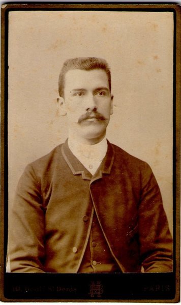 Foto photo gentiluomo con baffi in posa by M. Boisdon Paris cdv 1880 c.a.