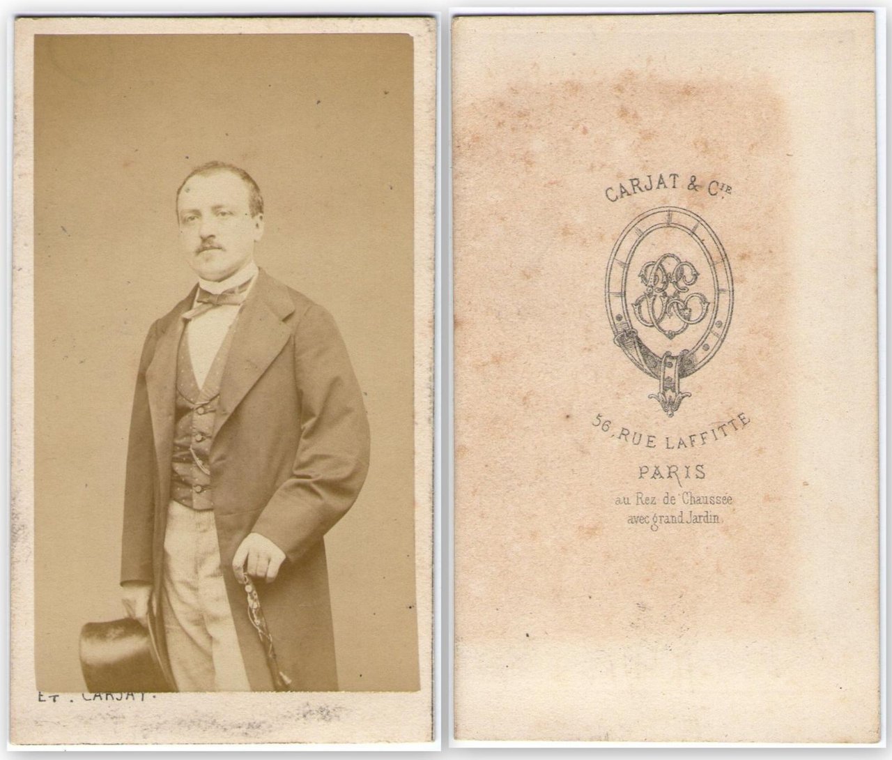 Foto photo gentiluomo con cilindro e bastone by Carjat & C. Paris cdv 1870 c.a.