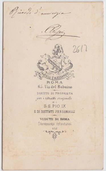 Foto photo gentiluomo con i baffi in posa F.lli D'Alessandri Roma cdv 1870 c.a.