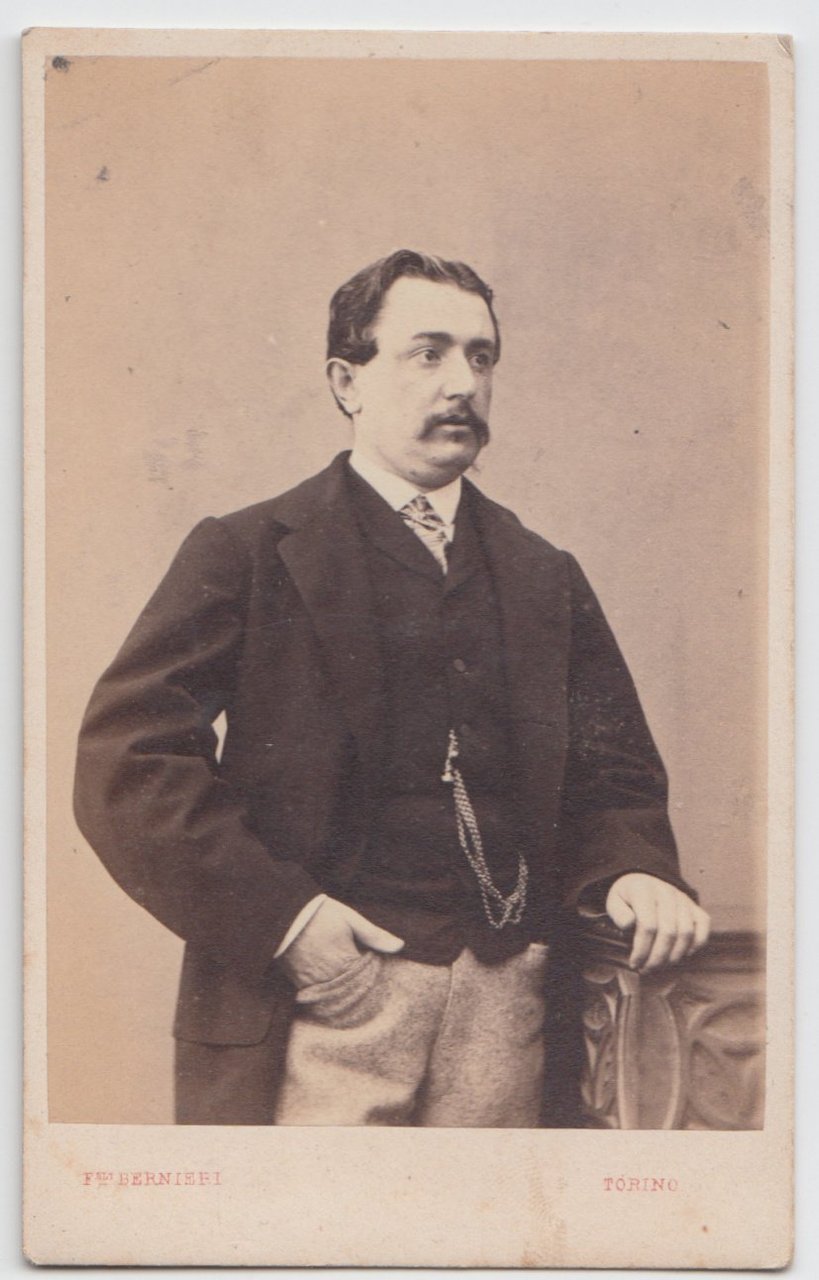 Foto photo gentiluomo con panciotto e catena by F.lli Bernieri Torino cdv 1870 c.a.