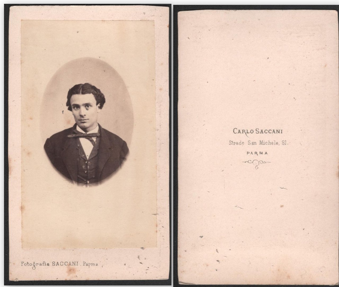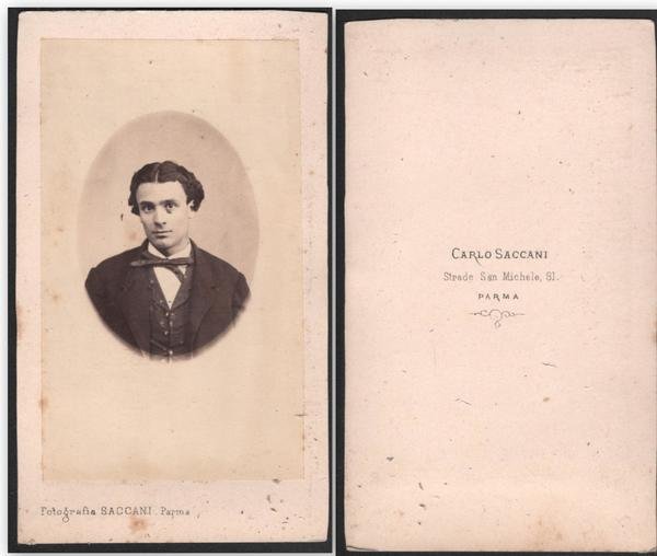 Foto photo gentiluomo con papillon by Carlo Saccari Parma cdv 1870 c.a.