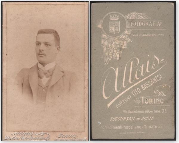 Foto photo gentiluomo con papillon by Fot. Allais Torino cdv 1870 c.a.