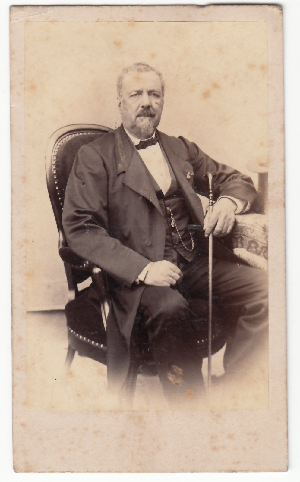 Foto photo gentiluomo seduto con bastone by Mainberger Paris cdv 1880 c.a.