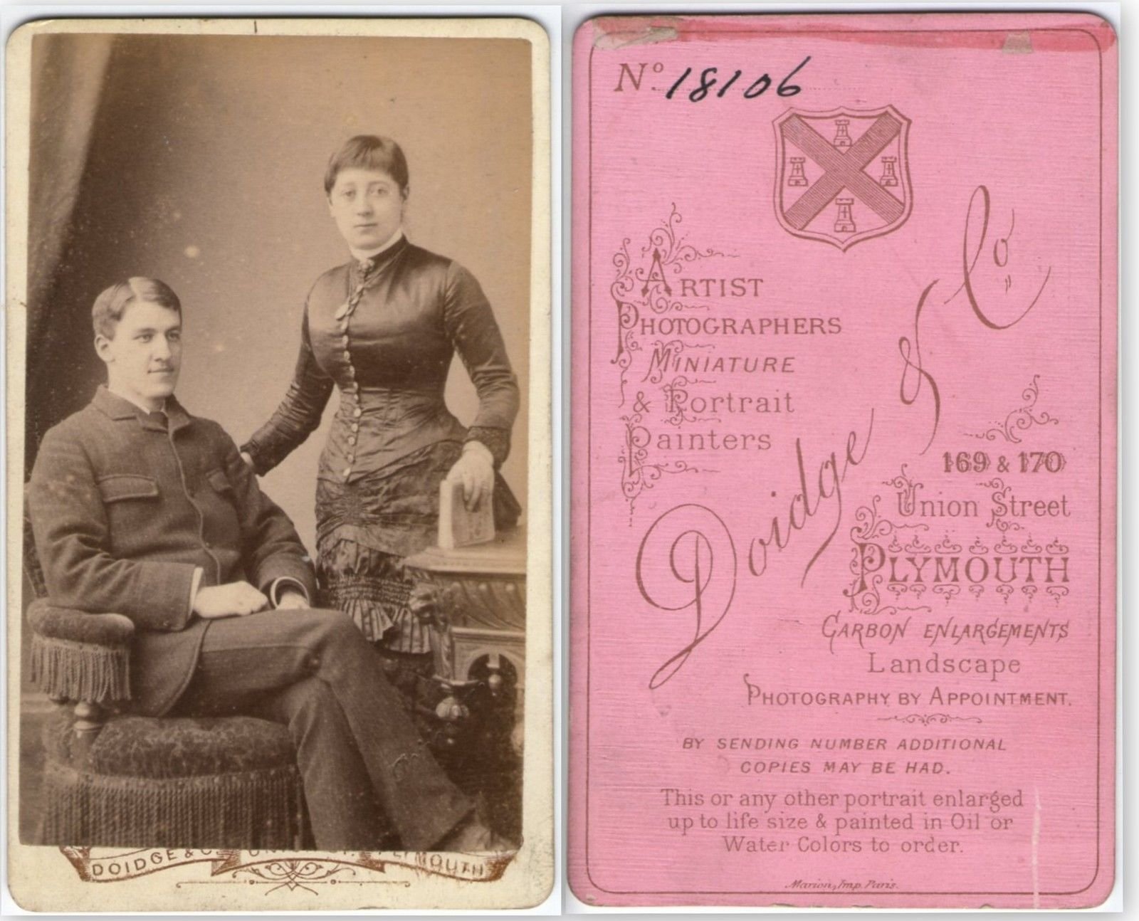 Foto photo giovane coppia con un libro by Doidge & Co Plymouth cdv 1880 c.a.