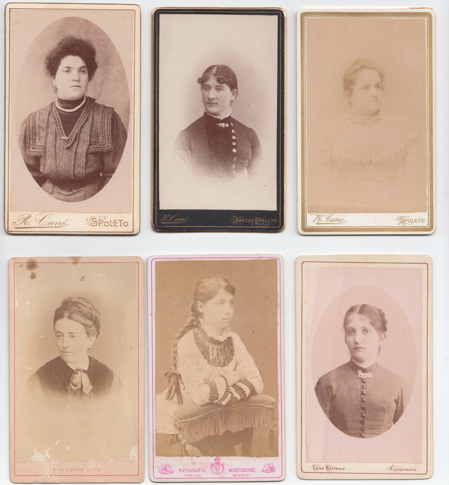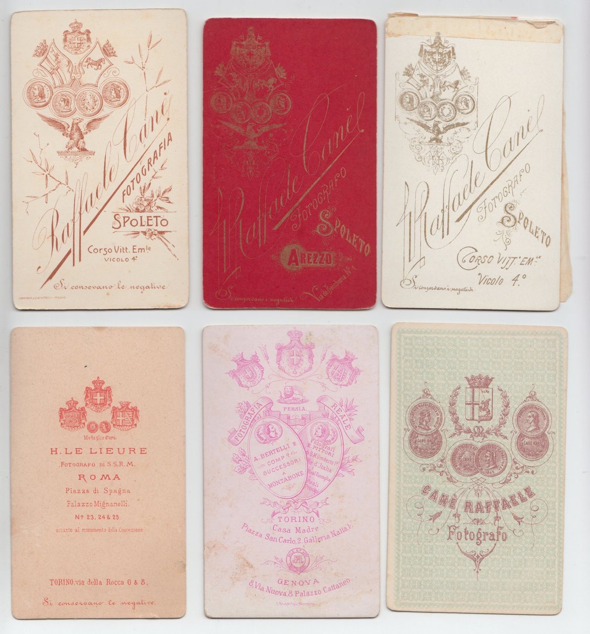 Foto photo lotto 6 fotografie albumina by R. Cane'- Lieure-Bertelli cdv 1880 c.a.
