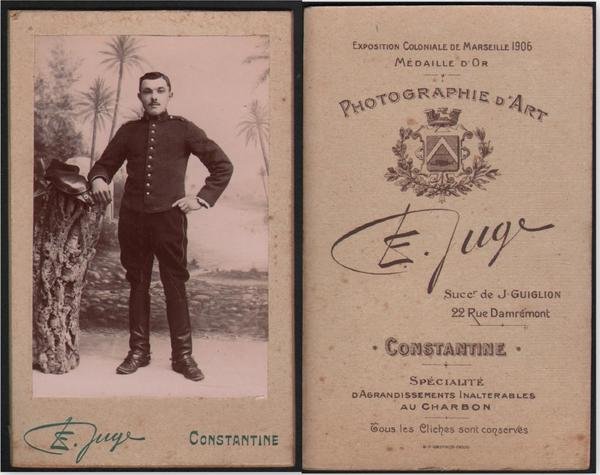 Foto photo Militare francese in posa by E. Juge Constantine Algeria cdv 1880 c.a.
