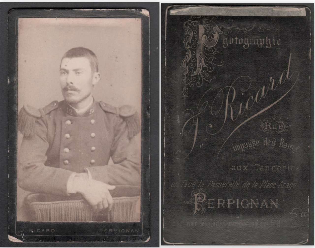 Foto photo militare francese in posa by J. Ricard Perpignan cdv 1880 c.a.