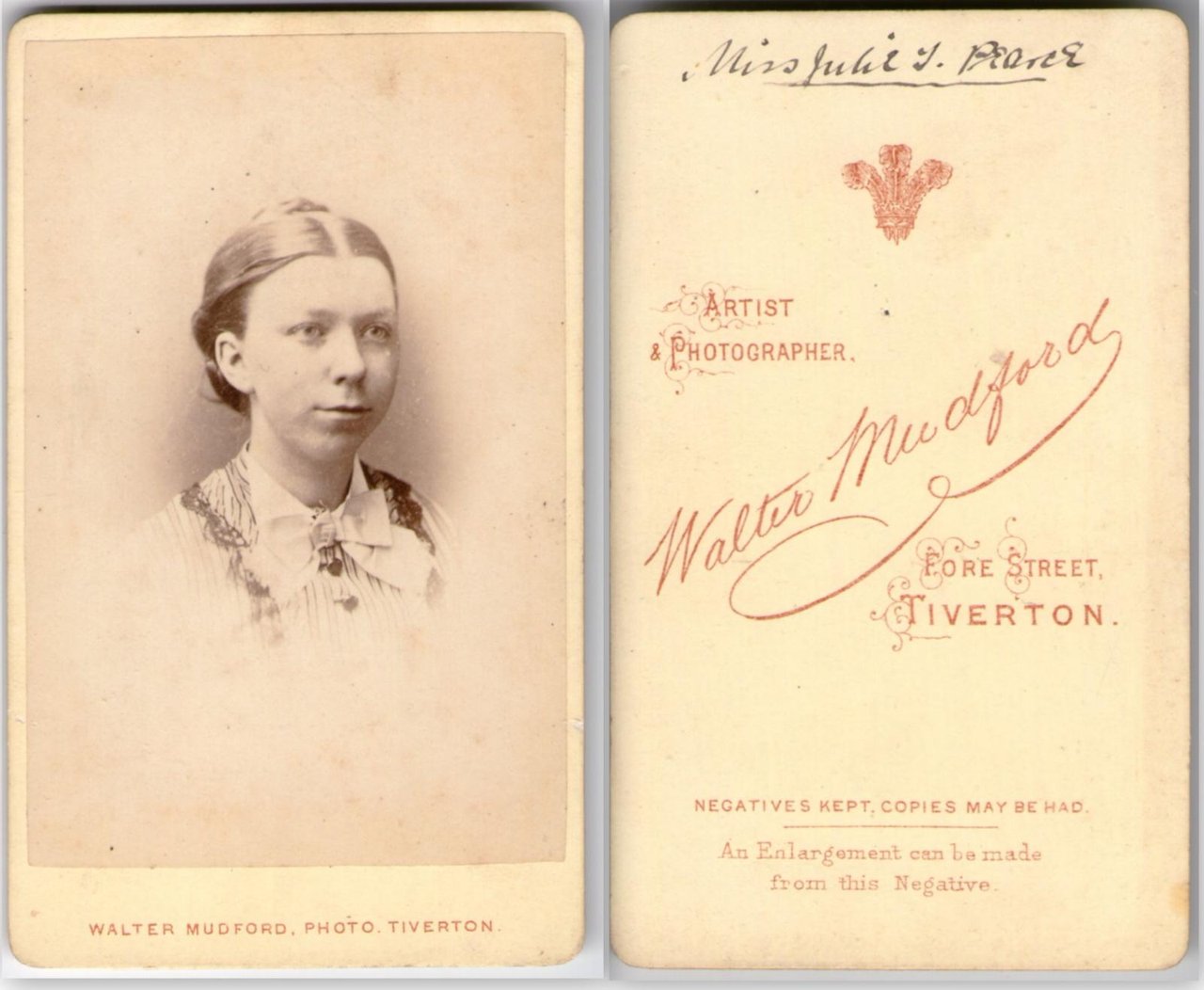 Foto photo Miss Julie Peance Walter Mudford Tiverton cdv 1870 c.a.