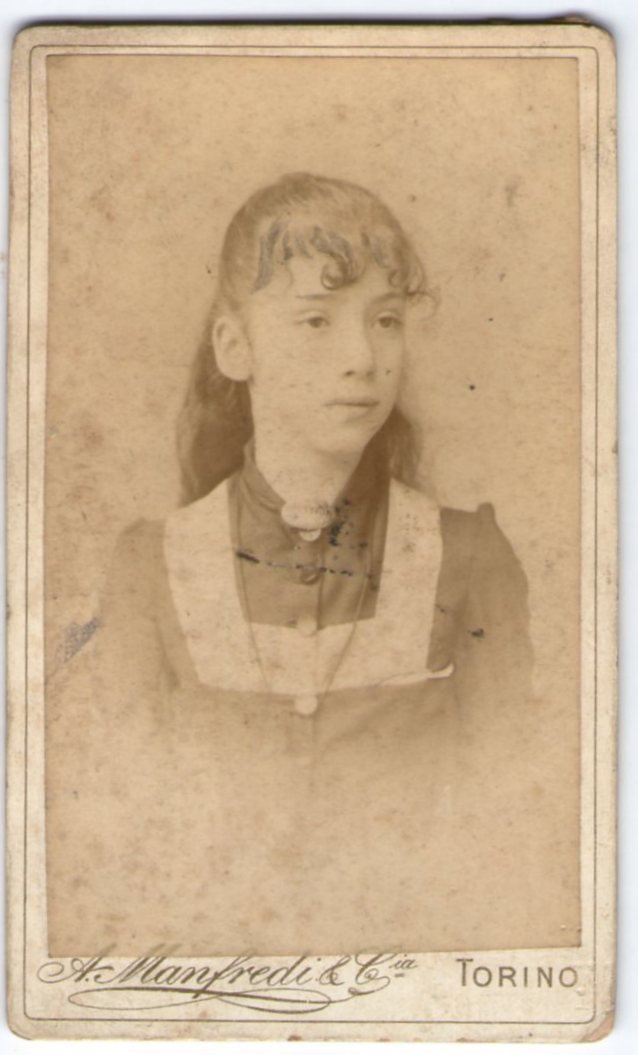 Foto photo ragazzina in posa by A. Manfredi & C. Torino cdv 1880 c.a.