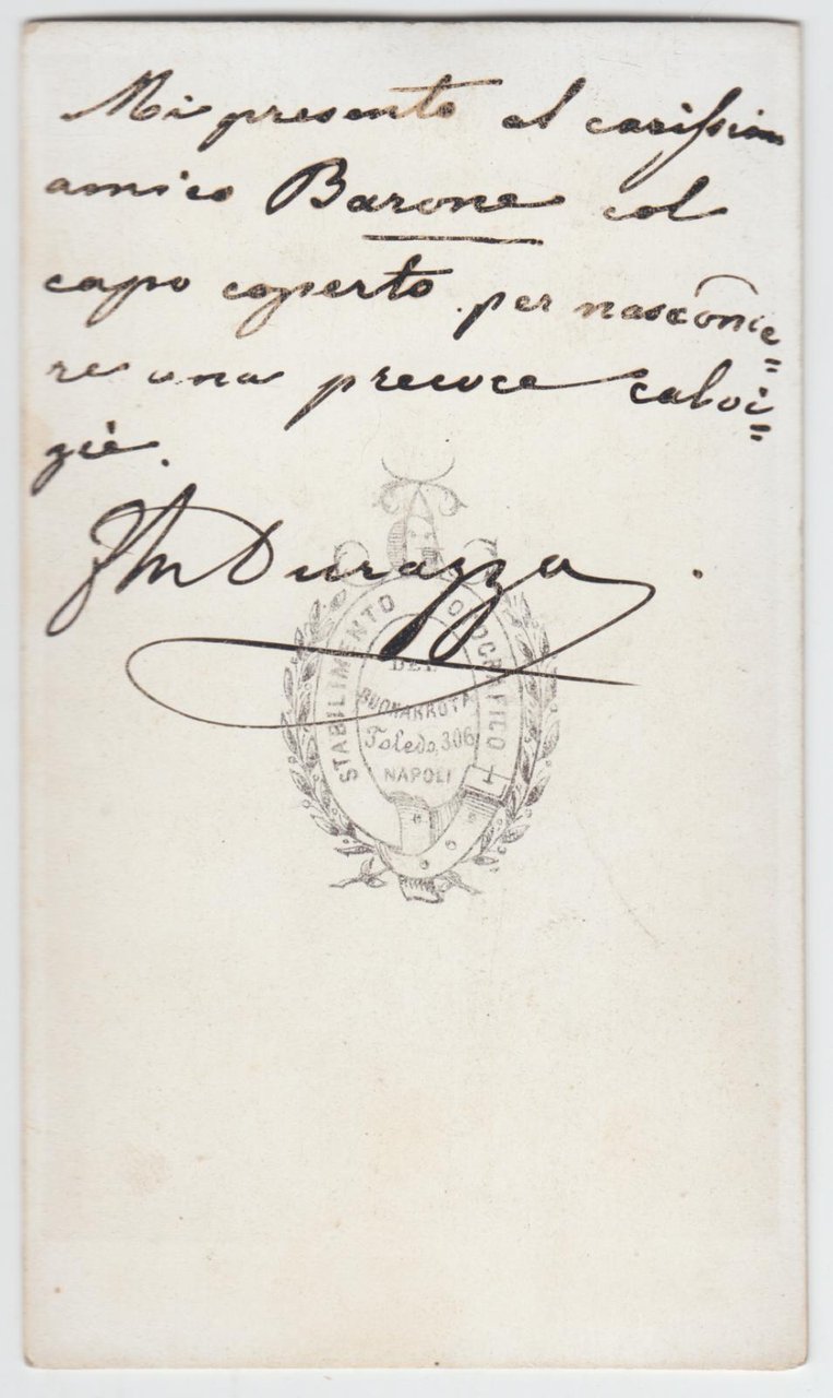 Foto photo ritratto di F. Durazzo nobile napoletano by Stab. Fotogr. Buonarrota cdv 1870 c.a.